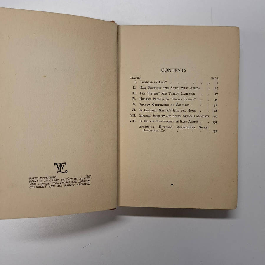 Published before World War 2. Bennett, better known as an ace crime reporter, reveals "underground Nazi propaganda in Germany's former colonies" in the lead up to War.