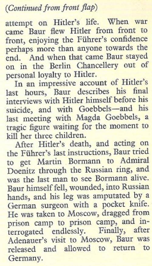 Hitler's Pilot - By Lt. Gen. Hans Baur - Translated From The German By Edward Fitzgerald **SCARCE**