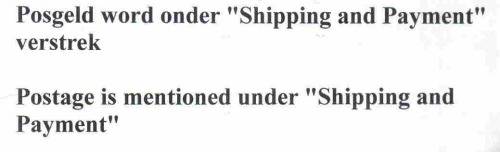 R65.00 Standard shipping applies to orders under R100.00, in most areas in South Africa. R35.00 Standard shipping applies to orders over R100.00. Some areas may attract a surcharge surcharge. This will be calculated at checkout if applicable.