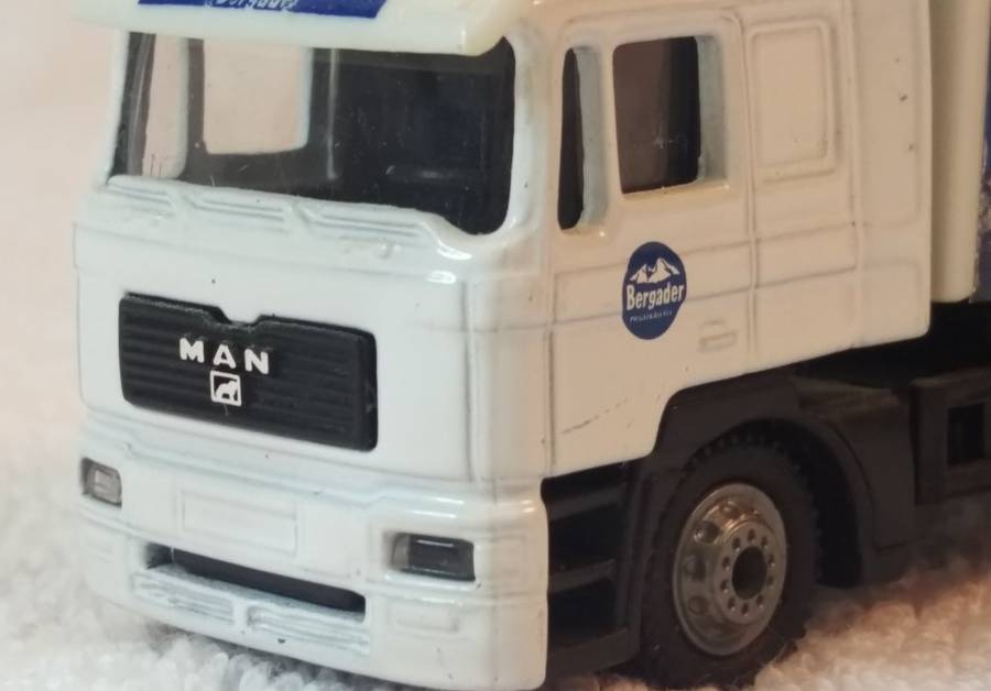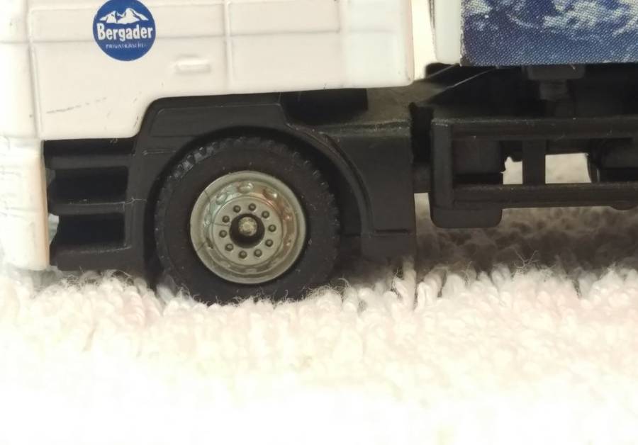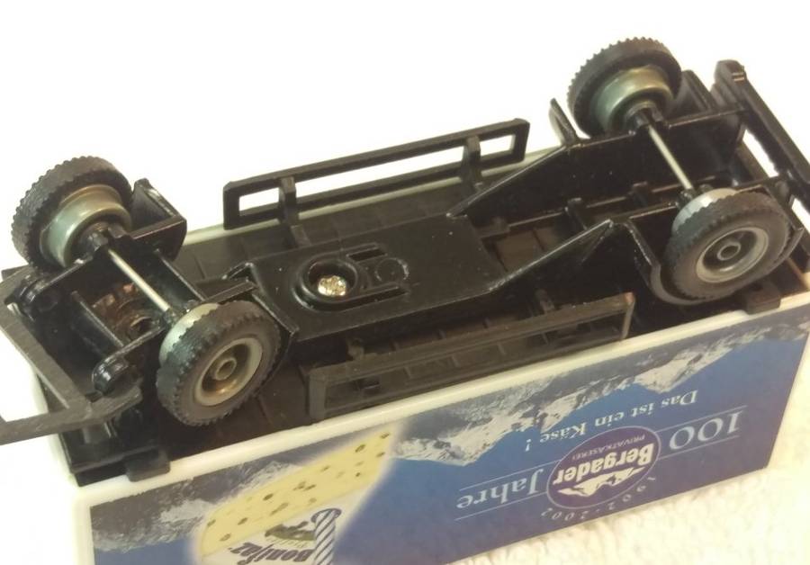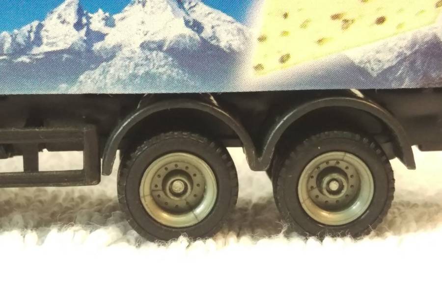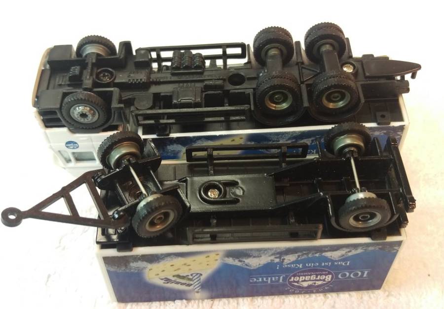Wheels are turning freely. Metal cab and plastic chassis and body and trailer.