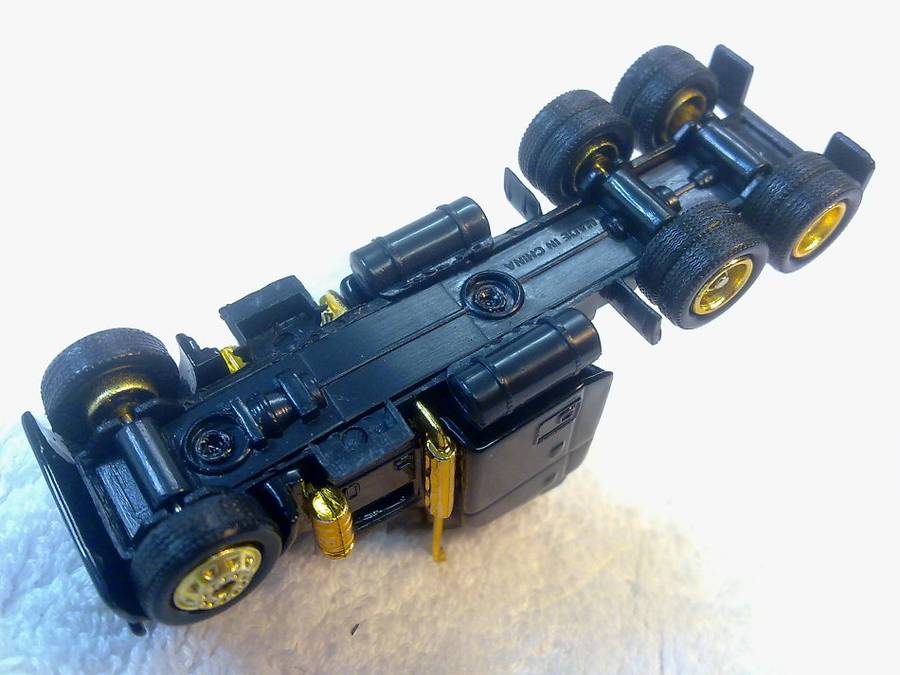 Wheels are turning freely. Metal cab and plastic chassis and body.
