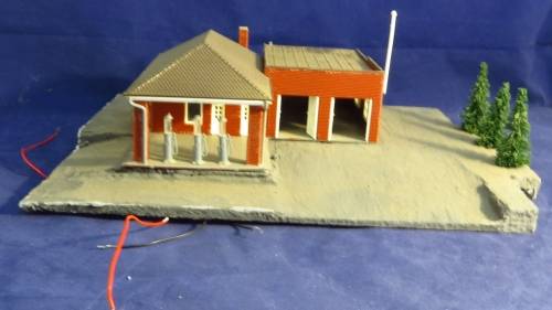 It is mounted on a styrene base. Roads and ramps modelled in. It is also fitted with lights. So that is done. With all that out the way, I guess you are paying about R100 for the building hehehehe. Deduct labour and you owe me!!!