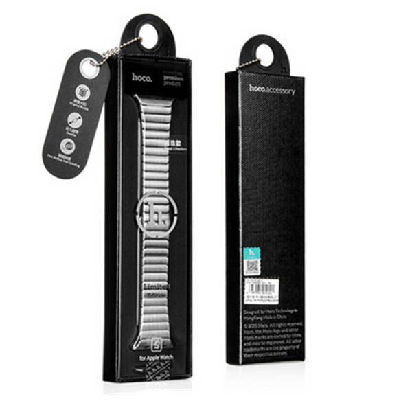 Hoco 38mm 42mm Grand Series Tarnish Stainless Steel Strap Watchband For Apple Watch Features 1.Adopts premium stainless steel, exquisite polishing process, smooth surface feels comfortable on your wrist. 2.Male watch band with dual folding clasp, easy to take on/ remove band, but quite securely. 3.This Watchband can be worn for long-time and suits lots of circumstances. 4.42mm and 38mm watchband for your choice. High ability in toughness, durability & hardness. 5.Refined adapters lock onto the apple watch interface precisely and tightly.