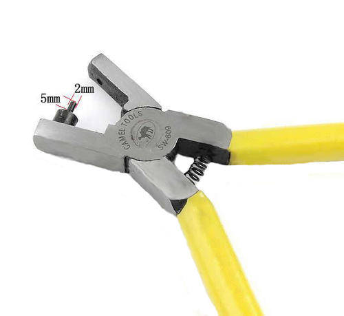 HOLE PUNCH PLIERS -BEADING TOOLS - 2 AND 5MM - YELLOW PVC - STEEL BAR HANDLES - 52x141x9mm
