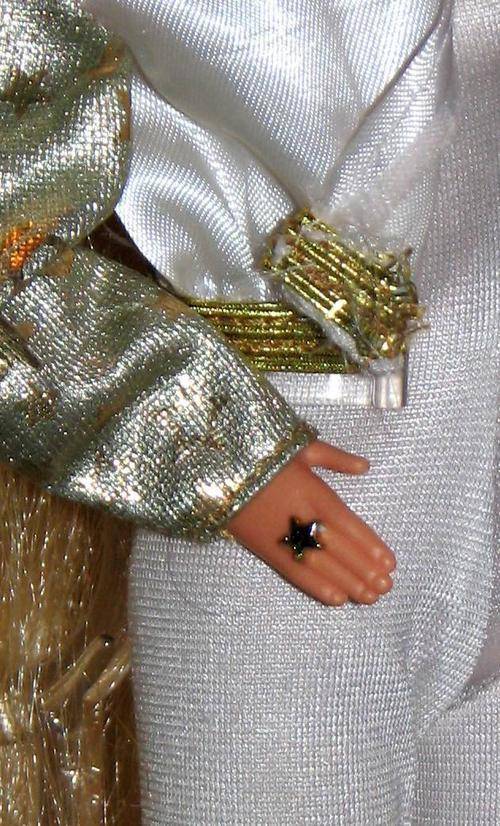 shoes & earrings. However, she is still wearing her star ring. She has extra long, shiny blonde hair, blue eyes