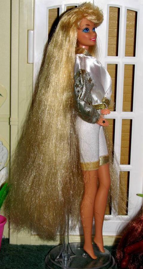 This is a gently played with, previously loved 1992 Hollywood Hair Barbie doll and she is made by