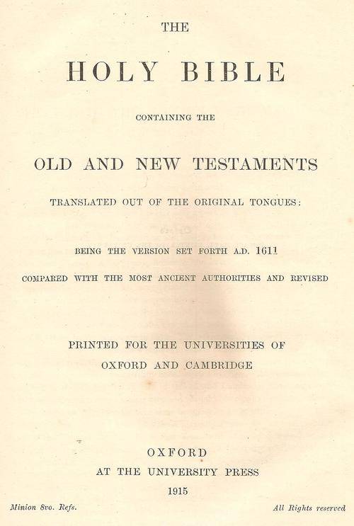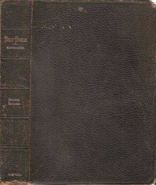 black leather covers with knap endings, red ends to pages, binding is tight & strong, previous owners name on back of front flyleaf, a nice condition bible
