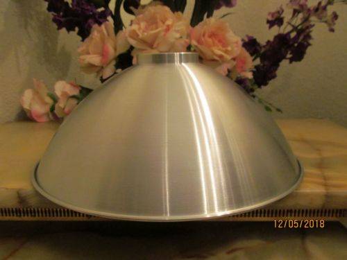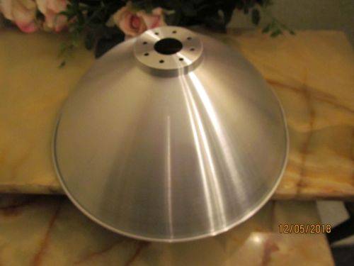 DECORATIVELY MANUFACTURED WITH A WHITE REFLECTIVE INNER SURFACE AND MACHINE TOOLED ALUMINUM OUTER SURFACE, A CONTEMPORARY LIGHT SHADE FITTING WHICH CAN EITHER BE USED AS A SHADE FOR A CEILING LIGHT OR ON A STANDING LAMP TO CREATE A STUDIO TYPE SETTING