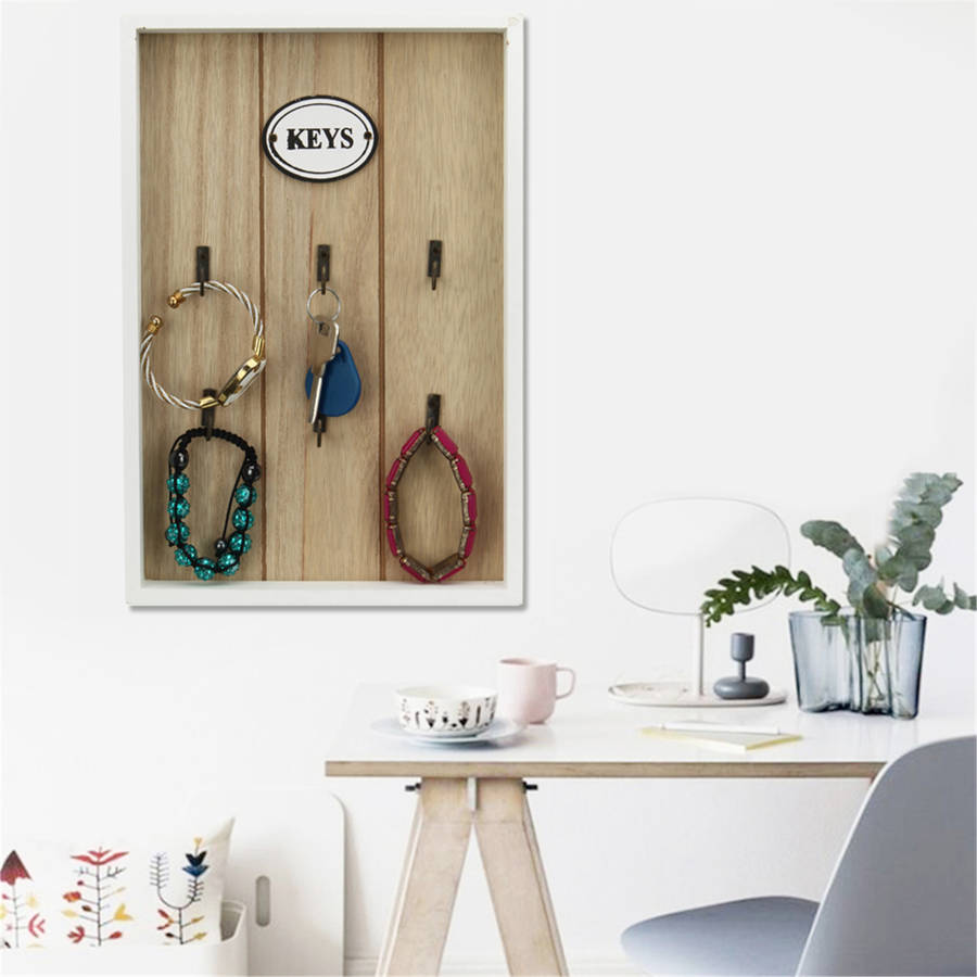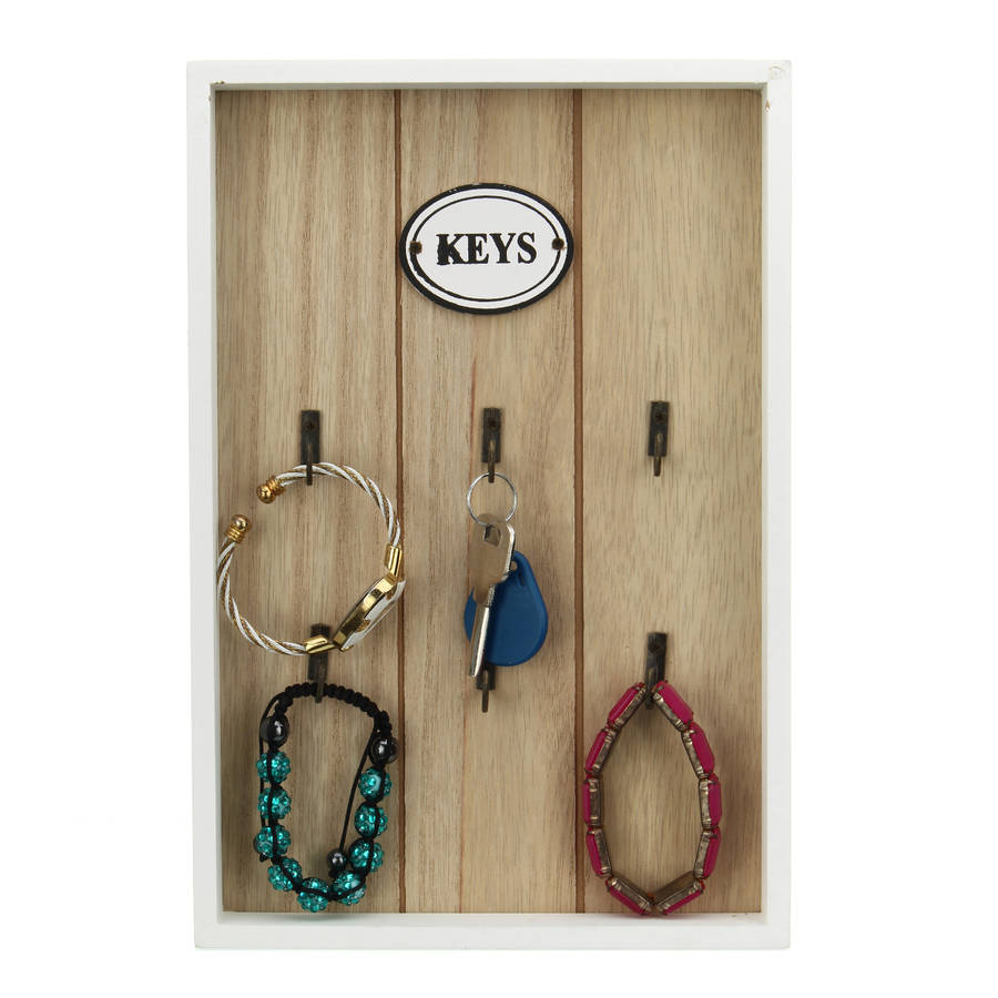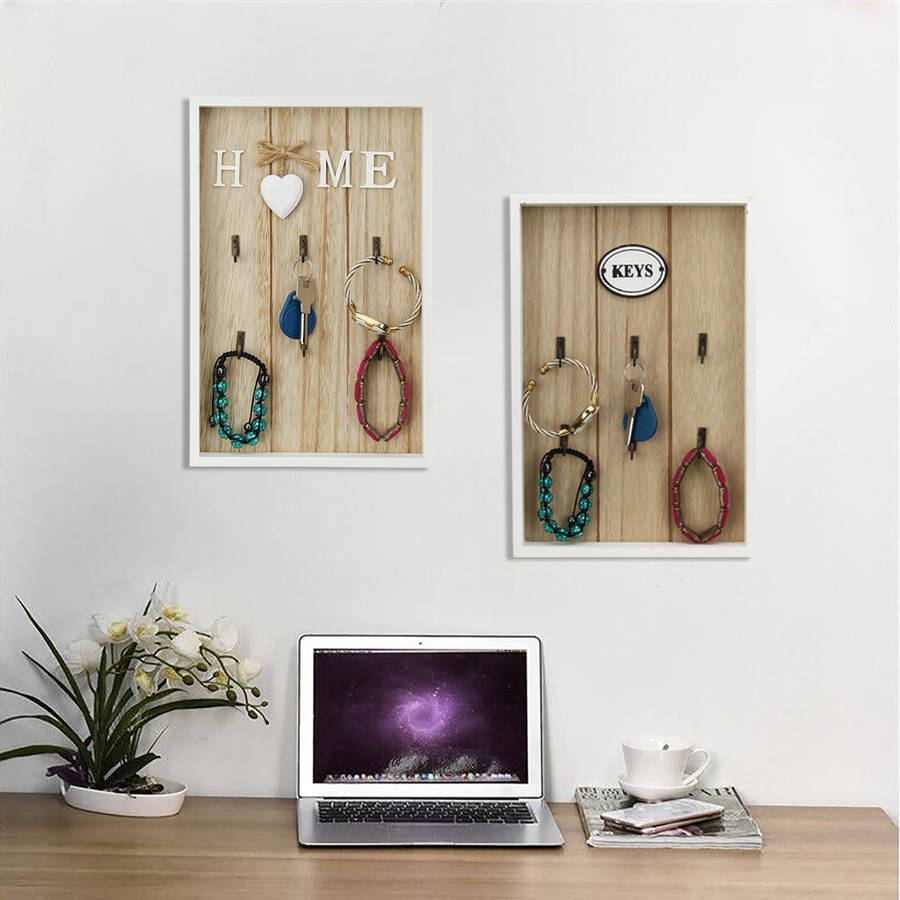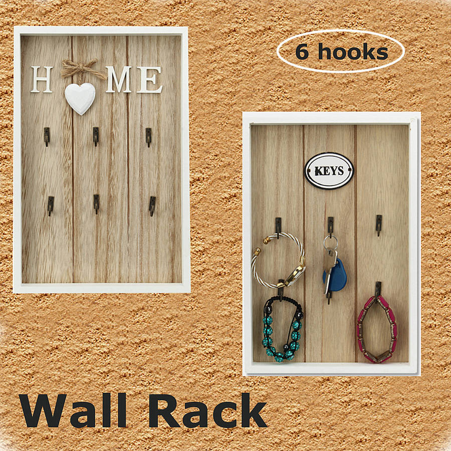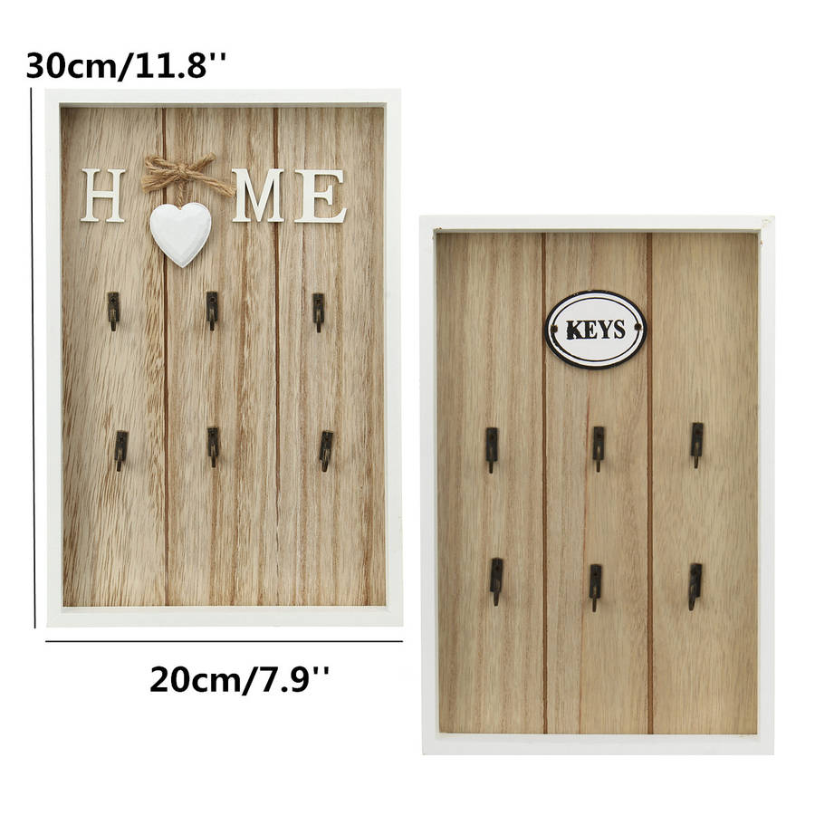 Specifications: Color: As shown Material: Wood Type: A - Home / B - Key Length: 30 cm/11.8 '' Width: 20 cm/7.9 '' Features: a This stylish antique design coat rack is a must for your hallway or kitchen. a Includes 6 strong hooks so there's plenty of space for all your coats or keys. a Great gift for your friends in your life. a Nice decor piece for your home. a You can hang your shirts, car keys, boat keys, shed keys, hats, aprons, pot holders, dog leash . Item has multiple uses. Please note, screws not included. a Care: Wipe clean with a damp cloth. Package Included: 1 Pcs x Key Rack