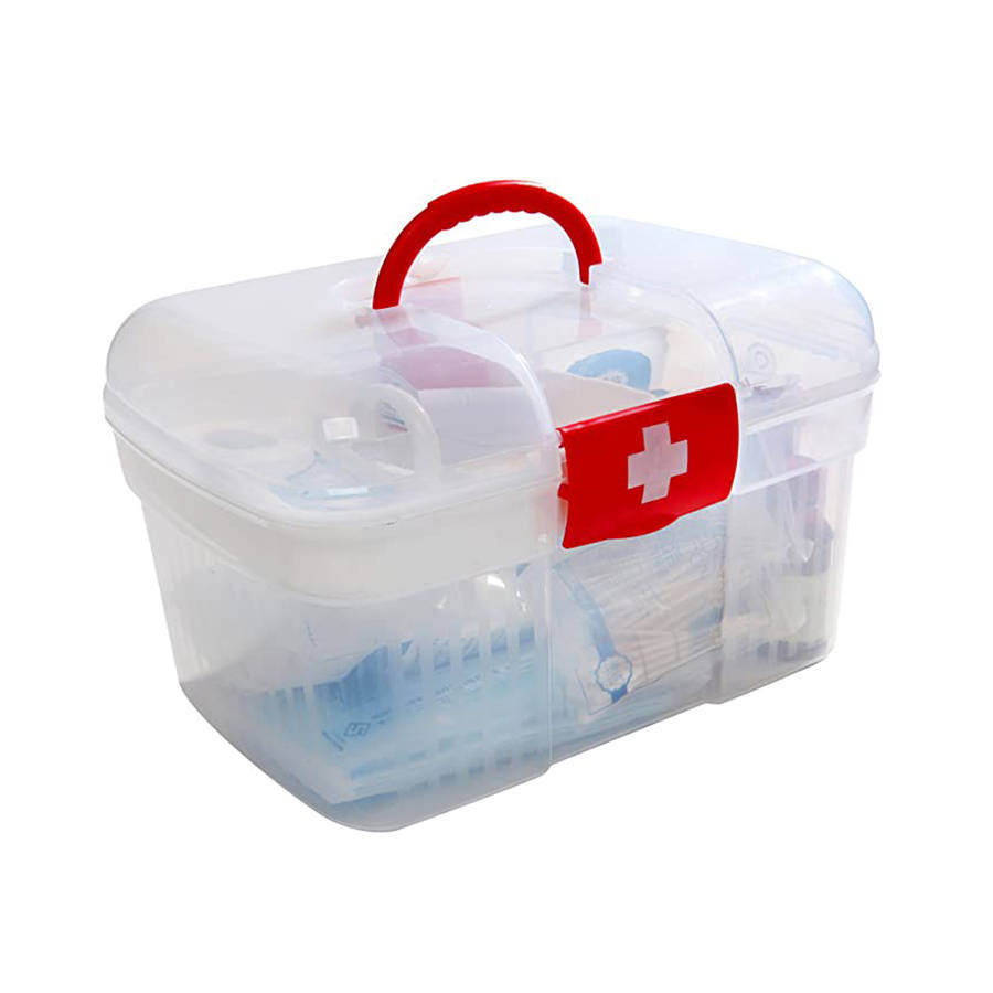 Features: aa Portable, sturdy translucent first aid container. Removable includes sorting and separating tray. High-quality and durable plastic material. Approximate size: 27cm*18cm*16.5cm