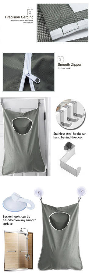 The included stainless steel hooks will fit most standard doors so it's super fast and simple to hang. And the sucker hook can be adsorbed on any smooth surface.The dark grey oxford cloth is not only stylish but durable and washable to ensure a long lasting clean product.