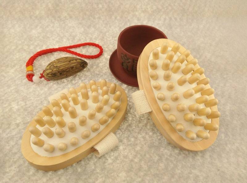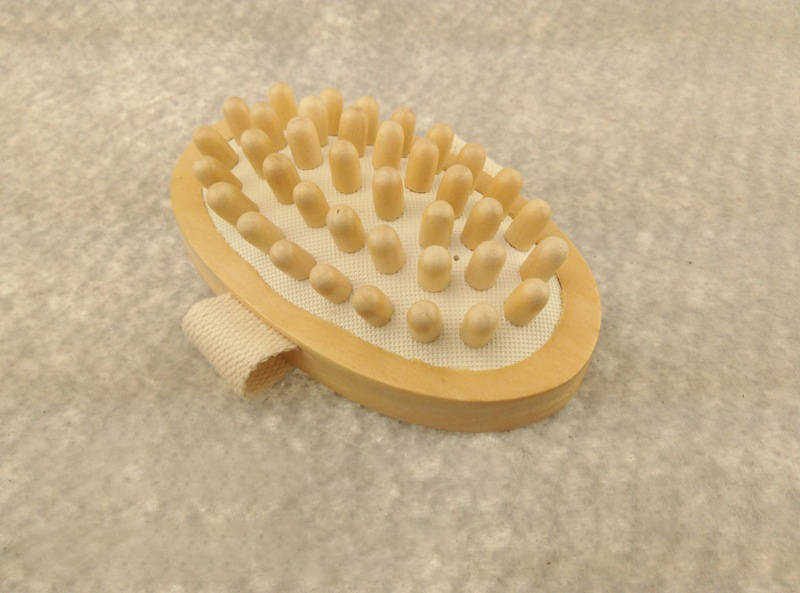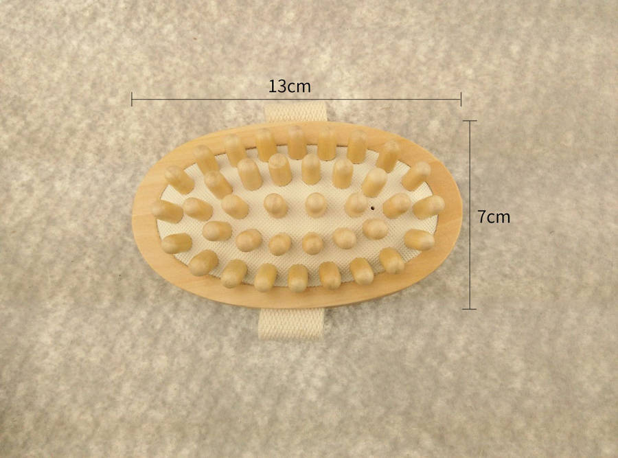 HonanaHand-Held Natural Wood Wooden Cleaning Brush Massager Body Bath Brush Give yourself a relaxing massage with this wooden body massager. Simply slip your hand through the strap and the brush massager fits compactly into your palm. Hand-sized massager with rounded nodules, making a gentle way to soothe the tired muscles. Set in rubber cushion, can rub way stress and tension comfortably. Specification:
