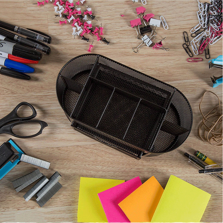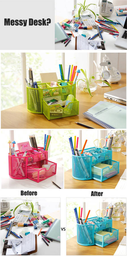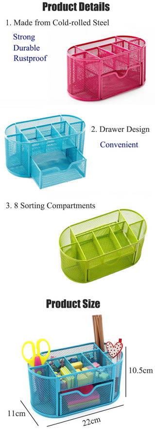 A perfect organizer for everything. Devided 9 compartment make it easy to organize your desk accessories that keep the stuff you need at hand. Sits firmly on the table with 4 soft rubber grips at the bottom protect your desk and ,rounded edges...