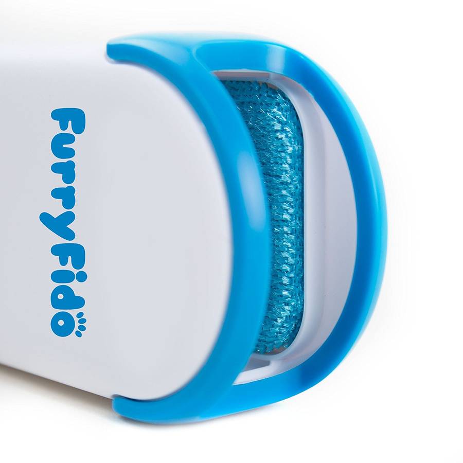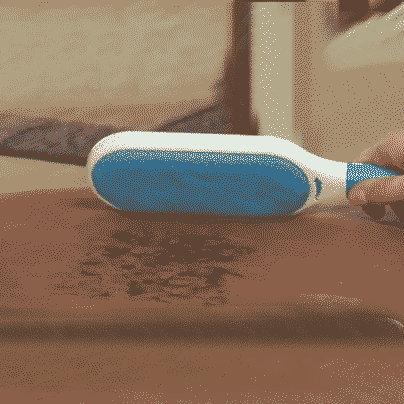 One dip in the self-cleaning base removes pet hair from the Fur Wizard lint brush.