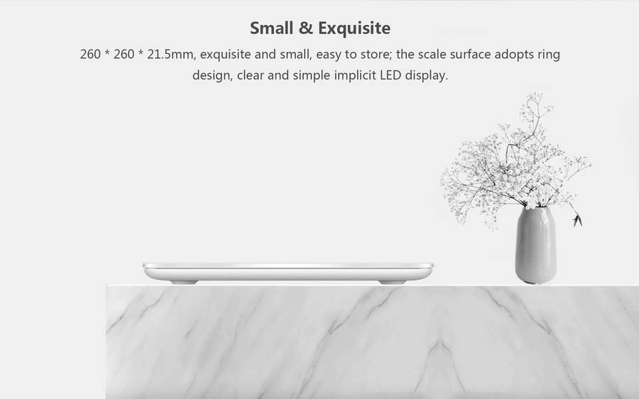 Small & Exquisite 260 * 260 * 21.5mm, exquisite and small, easy to store; the scale surface adopts ring design, clear and simple implicit LED display.