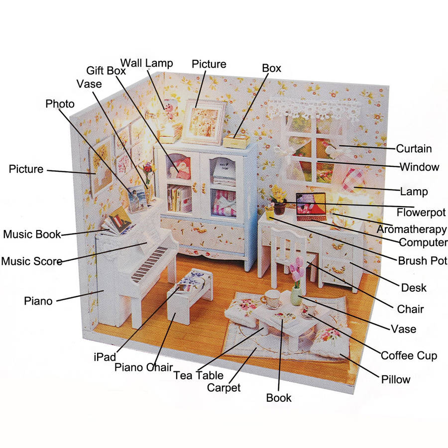 DIY Wood Dollhouse Miniature With LED+Furniture+Cover Doll House Room