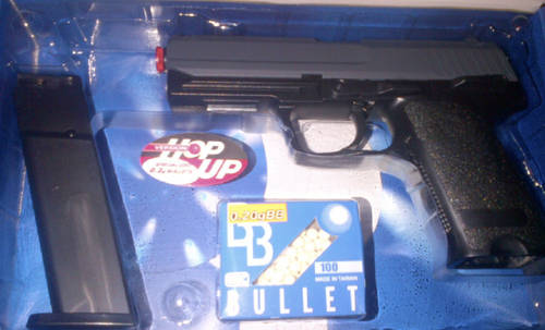 HOPUP ACTION SLIDE BB GAS HANDGUN UG-161B MATCH BLACK + 1 FREE 1000ML GREEN GAS
