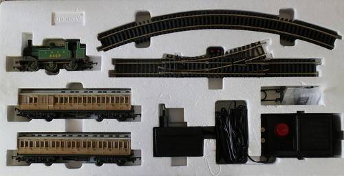 Second hand, but the set as well as the extra tracks are all in superb condition. Everything is in 100% working condition, no rust on rails or lint in any running gear or switches. You will be able to set up and operate the set right away.