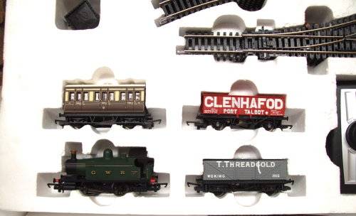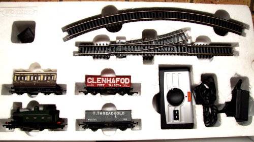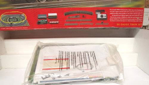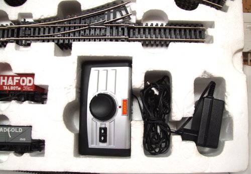On auction is this English passenger/freight set in very good condition. The 2 rail DC loco from 2005 is in good operational condition. It is an four wheel worm gear driven loco Hornby couplings and measures 185mm in length. Paint work and decals in new condition. It was tested and operates very well in both directions. Mechanically it is in new condition. I don't see any corrosion on these models; 2x freight cars with Hornby couplings; 1x passenger coach in good condition; 1 x Nickel Silver Oval track with turnout and Lima trackend(Coal bunker) and a big foto paper print of a landscape as can be seen on the box, in good complete condition: 1x 19v Hornby transformer + direction and speed control. Box in good condition. Overall this set is in very good condition. I am selling it way below its replacment value. Please see photos for detail for it is part of the description. Contact me by e-mail for inquiries. Item sold as per photos, as is.