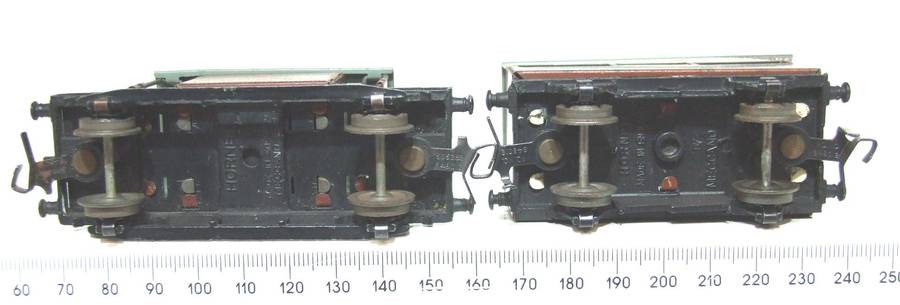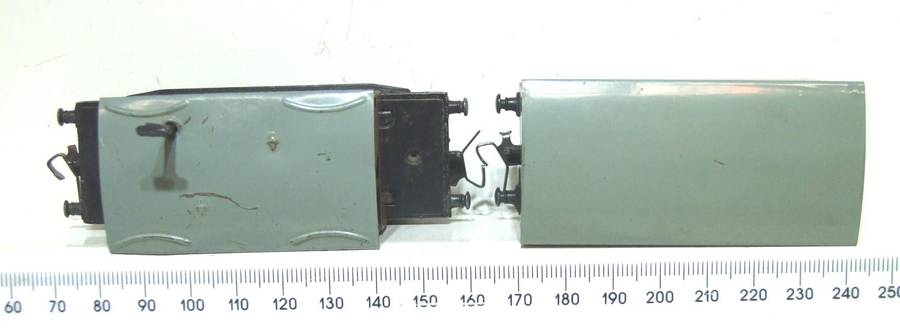 These tin metal cars are up for auction. It is in fair used condition considering its age. It has metal/plastic wheel sets and Hornby couplings installed. All buffers are still in place. There was some corrosion on the metal components that were cleaned. No filliform corrosion under the paint. The paint job is good. It's yours if you can use it for a small portion of the original cost. As part of the description, please refer to the photos for more details. For enquiries, please send me an email.