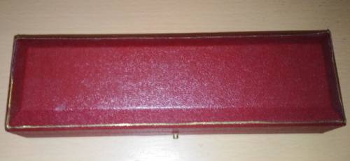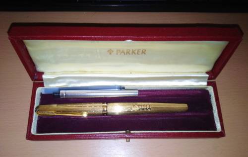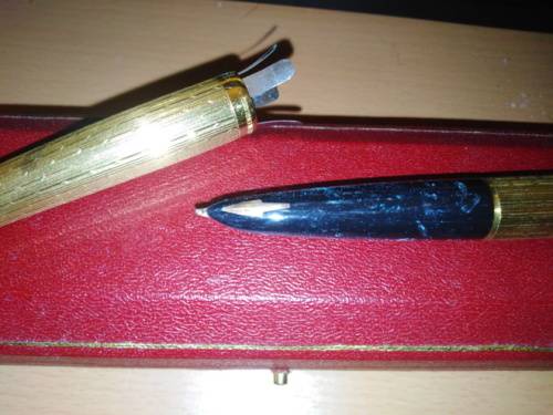 The pen came in its original red case. It is lined with light yellow satin and red velvet. There are two ink cartridges with the pen.