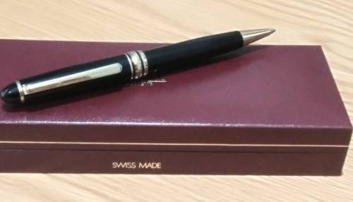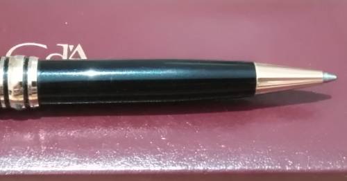 This bold black pen with gold trimming belonged to former SA Minister of Finance, Owen Horwood. The pen and the case is not a set. There is no logo or brandname on the pen to identify it as a Caran d’Ache pen. See * below