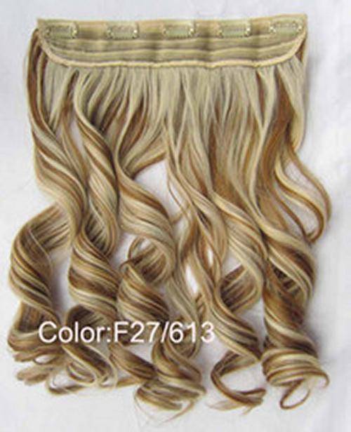 * 5 Clips on Wavy Hair Extension Brown Blonde Mix #27/613 *