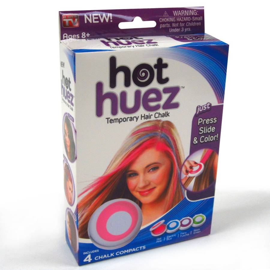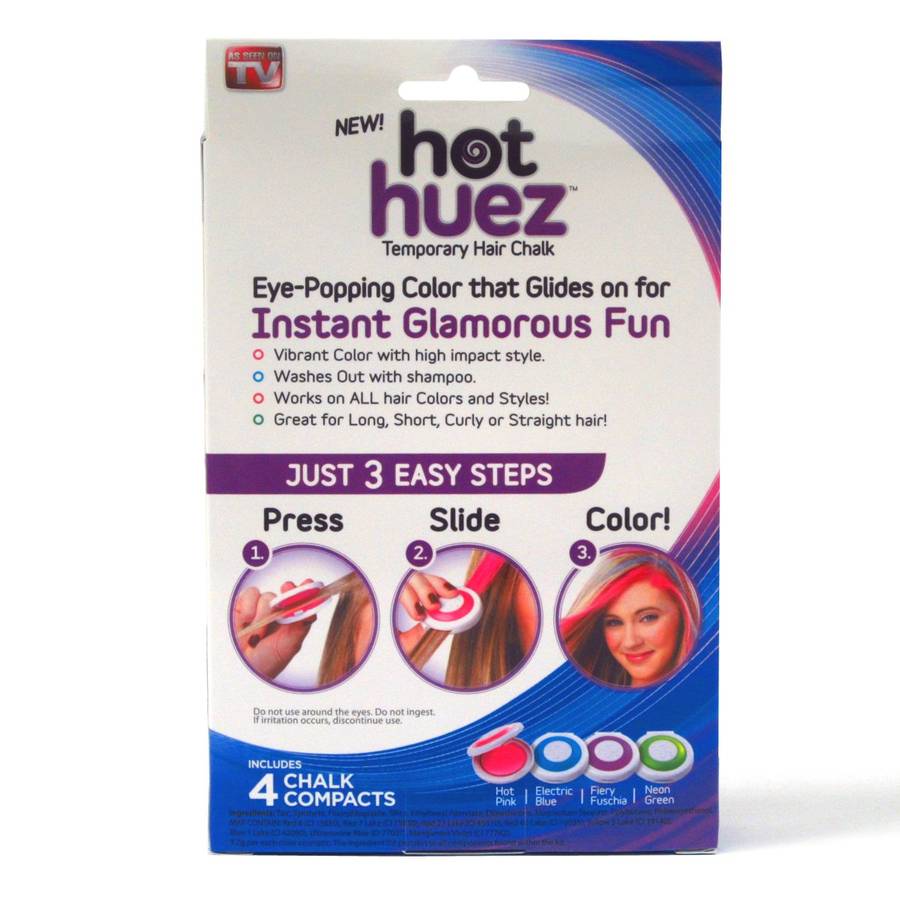 Hot Huez Hair Chalk is the hot new hair craze that allows you to instantly change your look with eye-popping color! Hot Huez Hair Chalk is fast, easy and washes right out with your shampoo. So whether it's for a rocking day or a special night, Hot Huez Hair Chalk is instant glamorous fun just for you. Just choose your hue, slide along hair and color goes on.