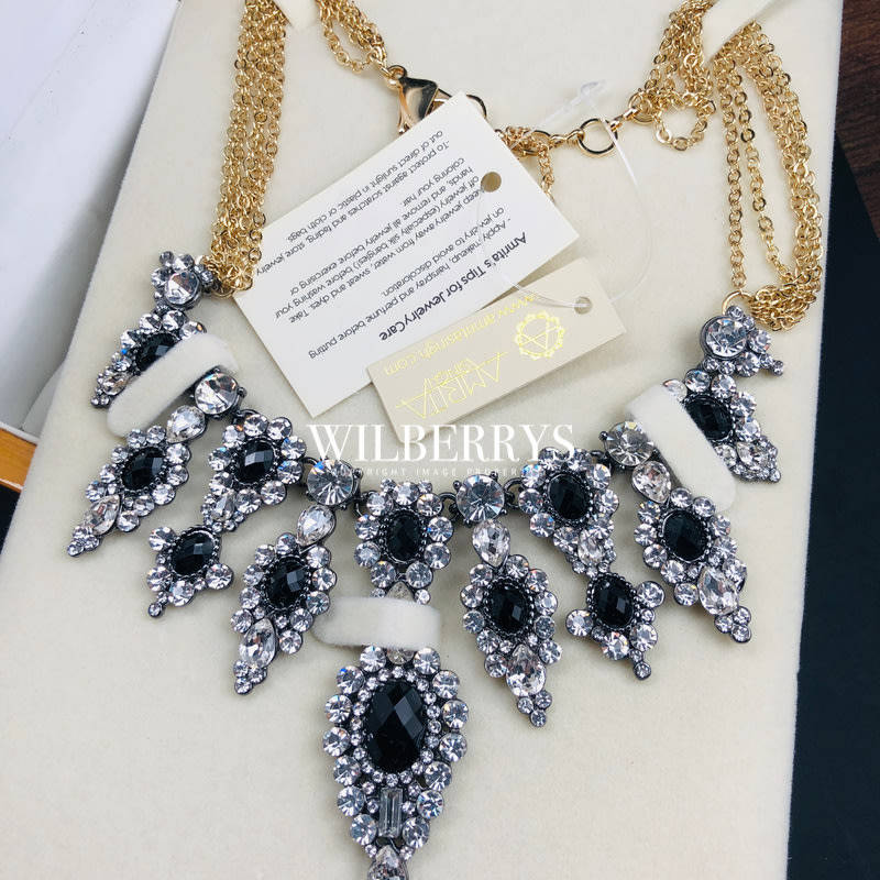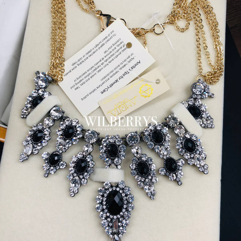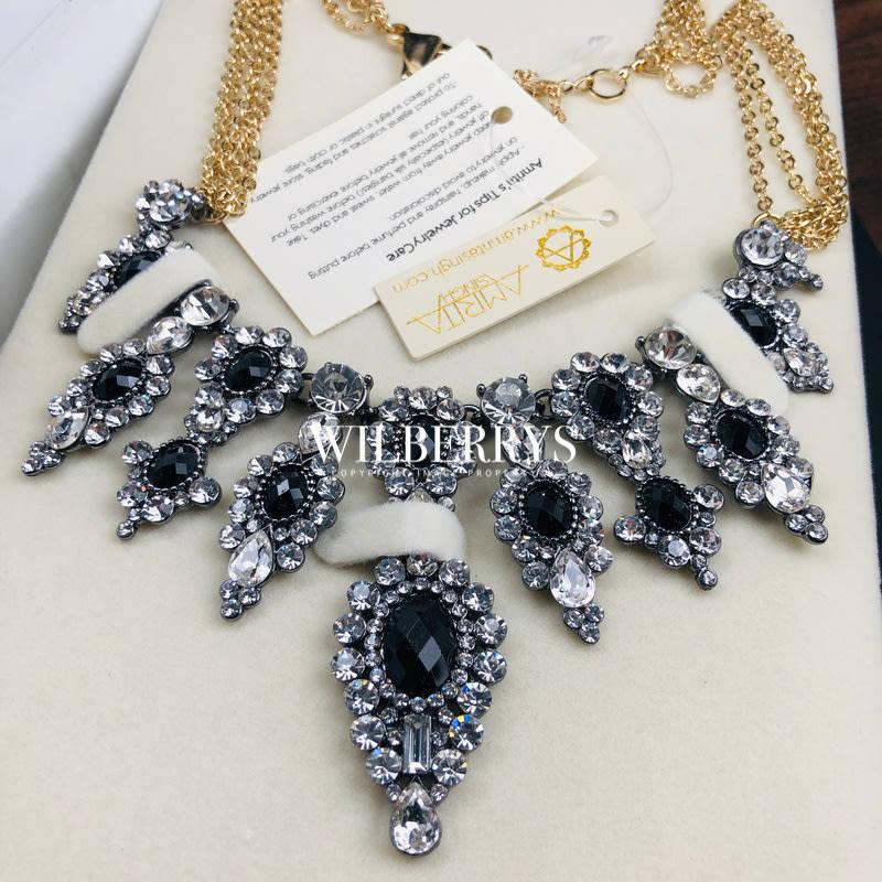 Gold-tone/Gunmetal brass necklace with Austrian crystals and resin stones.