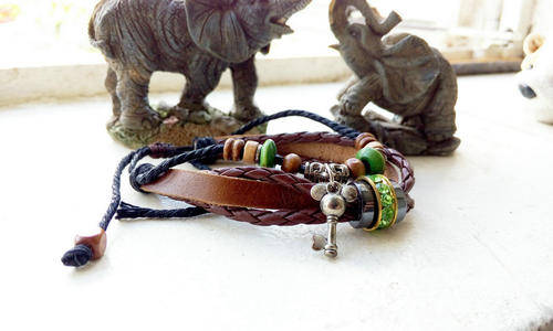 Hot Seller !!! -- Fashion Vintage Rectangle Beaded Leather Bracelet