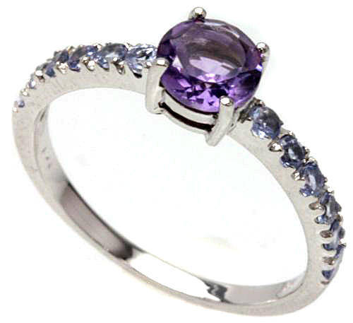 HOT! SOLID 9KT WHITE GOLD GENUINE AMETHYST AND TANZANITE RING