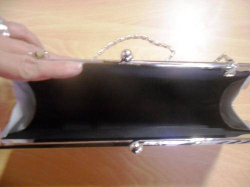 Super special price just below cost silver clutch handbag for any special occasion, slight damage on the clasp area hardly noticeable the chain is short, the handbag is a factory fault but it can still be used, 25.8 cm x 8 cm.