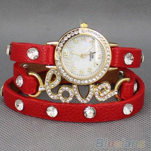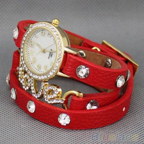 Hot! Vogue Love Cz Wrap Around Leather Bracelet Wrist Watch
