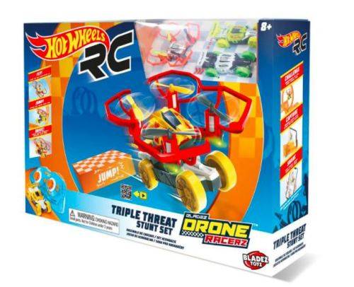 Get ready for a revolution in vehicle play with bladez drone racerz. Fly the drone indoors or out, flip 360 degrees and try the drone gate challenge. Now connect the drone to the exclusive hot wheels car chassis included to drive, drift and race your friends - or use the ramps and gates included to set up the ultimate stunt challenge. Drone racerz even work with hot wheels track (not included) so you can set up a head to head drag race or use track to build bigger and wilder no limits drone racerz stunts.