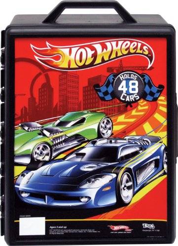 This rugged plastic carry case holds up to 48 pieces of 1/64th scale Hot Wheels vehicles. Boys will have fun storing and showing off their favorite vehicles in this case.