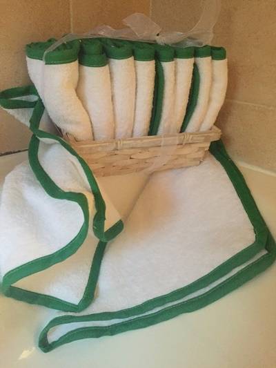 30cm x 30cm hand towels as used in hotels and guest lodges packed in a nice wicker basket