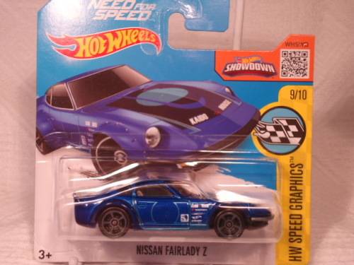 The model on display is a Hotwheels - # 184/250 - 9/10 - Nissan Fairlady Z - 2016 - Speed Graphics in mint and boxed condition.