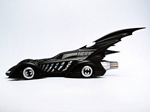 1:18 Batman Forever Batmobile Based on the legendary DC Comics character, the film Batman Forever was directed by Joel Schumacher and starred Val Kilmer as Batman. This movie was the third of Warner Bros. Pictures' Batman series, at the time. With a claimed maximum speed of 330 mph and the remarkable ability to climb straight up walls, the Batman Forever vehicle is one of the most famous BATMOBILES of all time. To accentuate the fabulous lines of this car, the engine and wheels were indirectly lit so that they appeared to glow blue. Our 1:18th scale model features remarkable details, from the swooped sky-high tail fins to the shark-like grille that struck fear into the hearts of bad guys all over Gotham City.