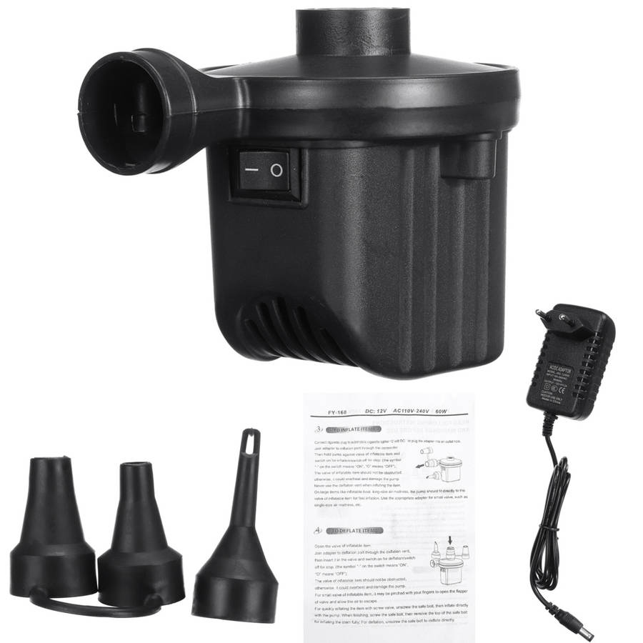 Specifications: Item Name: Electric air pump Color: Black Power: 60w Wind pressure: 4000Pa Adapter: 12V 2A Car line:12V DC interface:12V Be applicable: 110-240 Plug: A: EU Plug, B: Car cigarete lighter(optional) Package included: 1X Electric air pump More details: