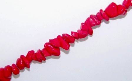 Stone type Natural Howlite (dyed red) Size Varies - avg 5mm to 8mm Length 900mm Type Chips / beads - drilled right through Colour Red (as per image) Sources USA Quantity 1 strand at a time Picture Actual photo of strand from supplier