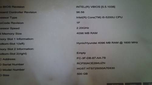 HP Elitebook Laptop model number 840. The laptop does come on and the keyboard lights up but the screen has patches on it . The laptop has been opened to remove the hard drive for customers information, which was replaced back into the laptop . The hard drive is 500GB and the Ram is 4GB . No further test have been done . Ideal for spares or for a technician to repair . However Buy "AS IS " .