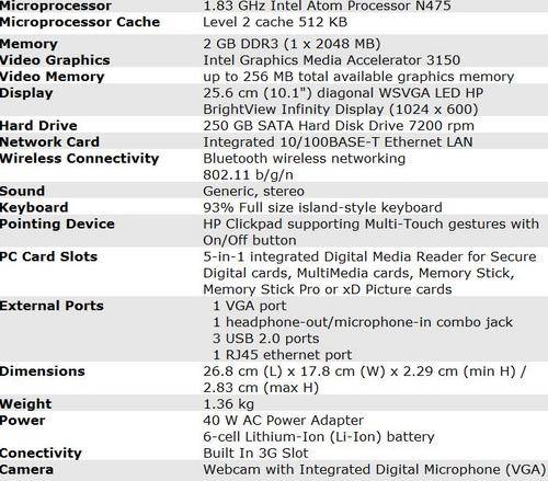 HP Mini 210 1110Si Netbook - BRAND NEW - 3G READY -LED- Windows 7 - 250GB HDD- 2GB RAM + MORE