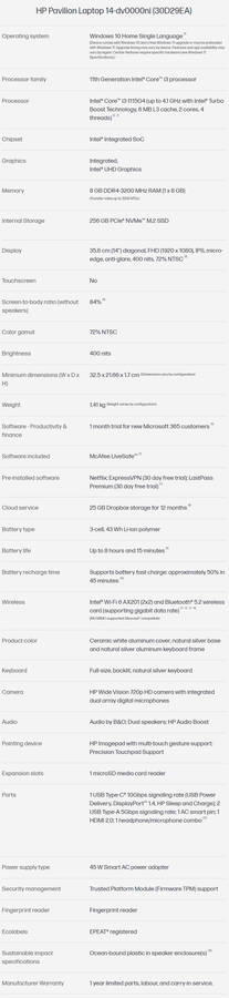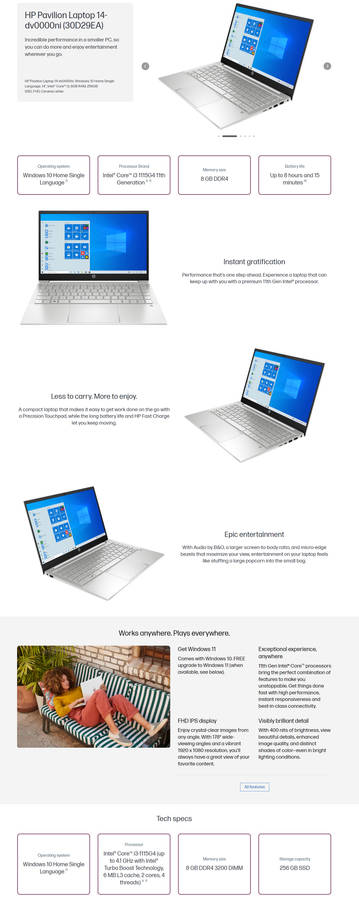 HP Pavilion 14 11th Gen i3-1115G4 8GB Ram 256GB NVMe SSD