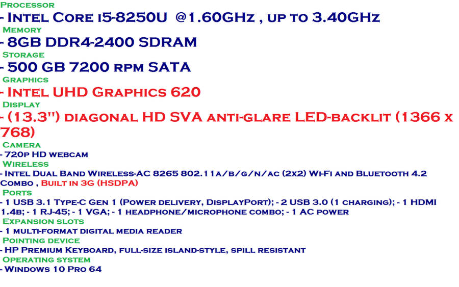 8TH GENERATION CORE I5-8250U @1.60GHz, WITH 8GB RAM , 500GB HDD
