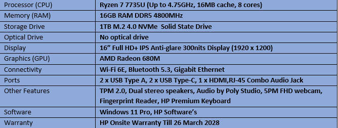 16GB DDR5 RAM(4800MHz),1TB SSD,16" FHD+ IPS 300nits Display(1920X1200),Backlit Keyboard