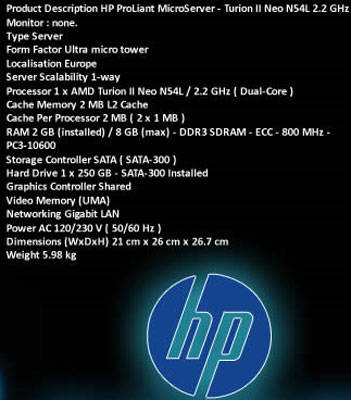 The HP ProLiant MicroServer is a general purpose server that can provide a platform to organize and safeguard your business information, allow effective communication with customers and make the most of your existing office equipment and resources. The HP MicroServer is a cost effective starter server for businesses and it can take your business to the next level of productivity and efficiency.