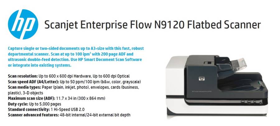 HP Scanjet N9120 High Volume Desktop scanner 50ppm **Last One Left**