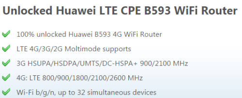 Huawei LTE/4G Wi-Fi Router - Connects 32 devices simultaneously - works on Vodacom, MTN and Cell C