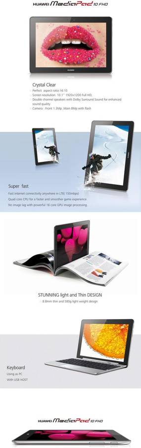 | Model | MediaPad 10 FHD S10-101u 8GB White/Silver & Black |