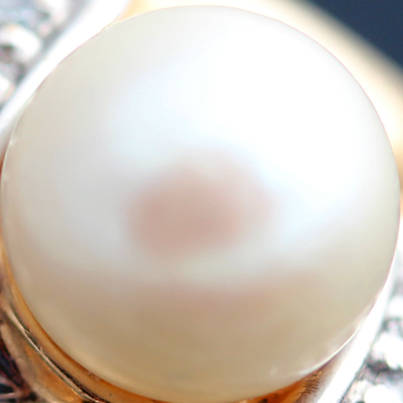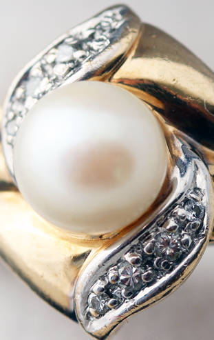 HUBERTUS VON SKAL VINTAGE CULTURED PEARL, DIAMOND AND 10CT YELLOW GOLD RING. REFINED AND LUSTROUS. HEAVY 5,68 grams!